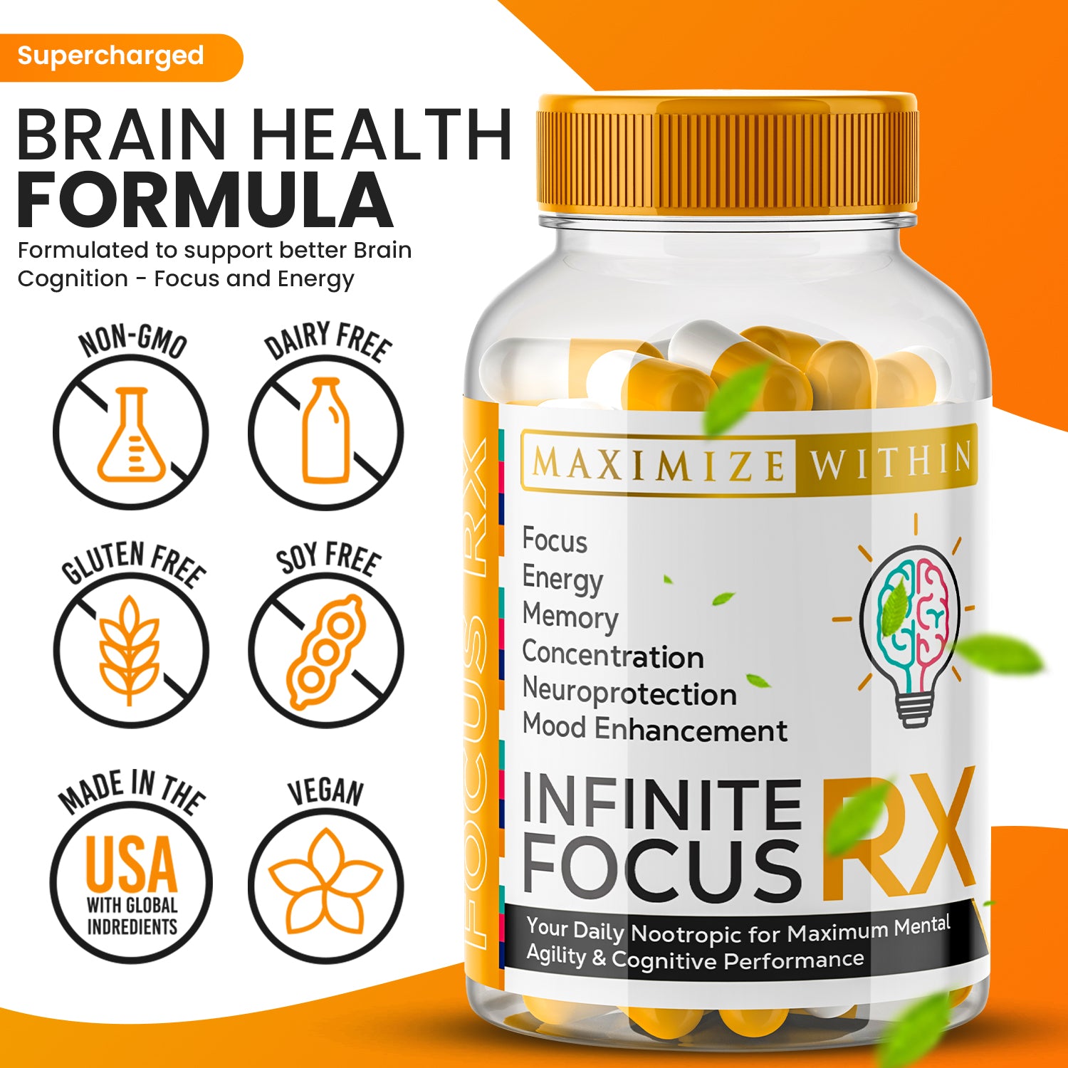 Focus RX is designed to support mental clarity, concentration, and focus. Its unique blend of ingredients helps you feel alert, sharp, and ready to tackle your day without jitters.